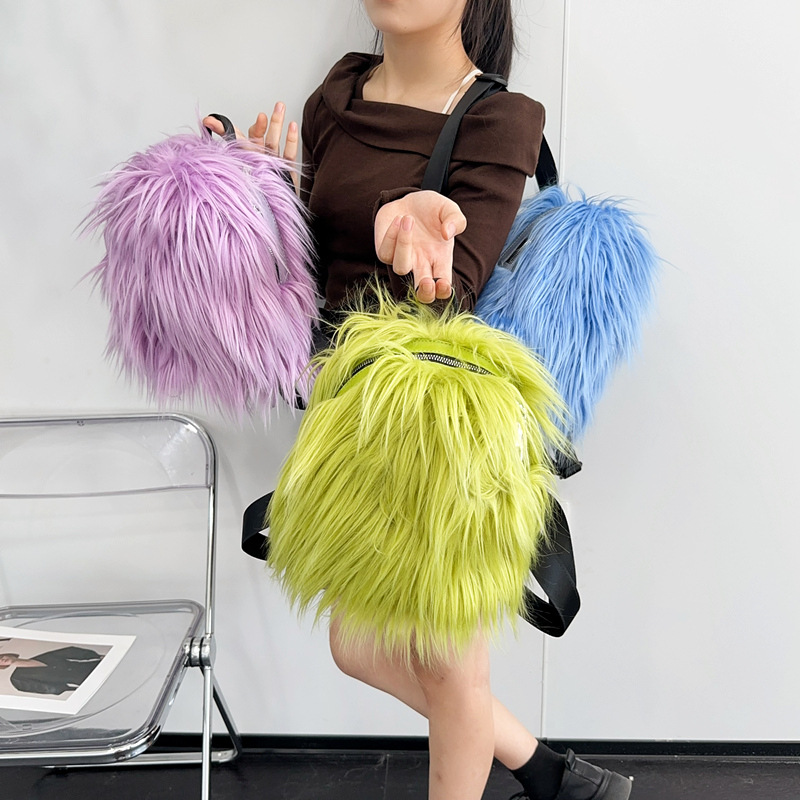 24新型秋冬の長い毛は肩のリュックサックの大衆のデザインを調節できます。