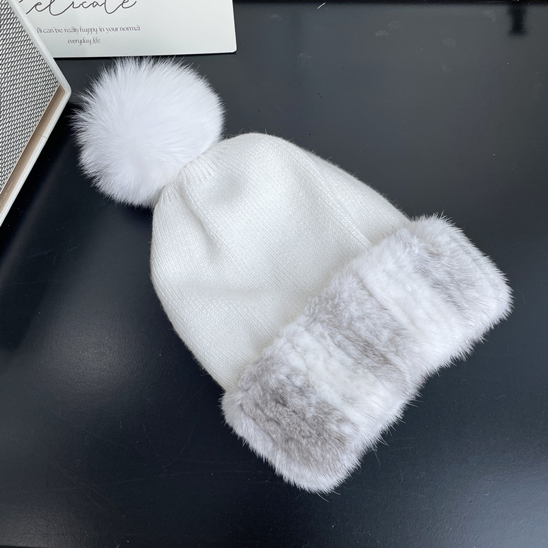 ミンクの毛糸帽子の子供は秋冬ファッションのミンクのウサギの毛を混ぜてニットのキツネの毛の毛皮の帽子を編んで耳を保護して保温します。