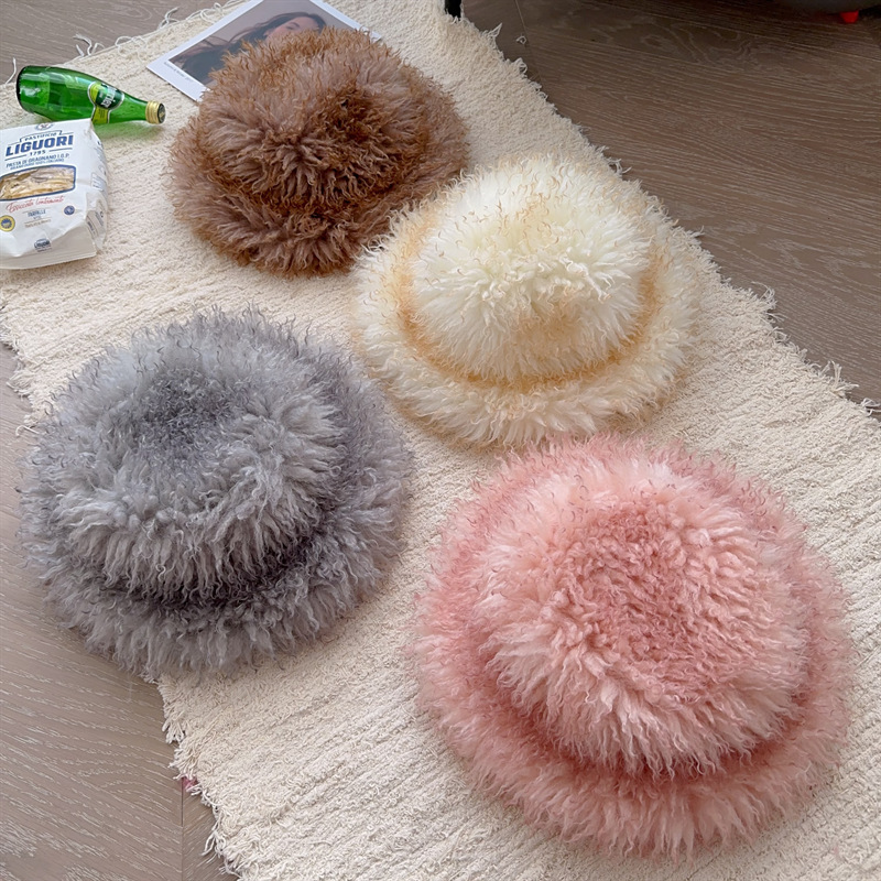 日韓のぬいぐるみの保温の盆の帽子の秋冬の小さい大衆の設計はビーチのウールのグラデーションの色の個性をまねる毛の帽子