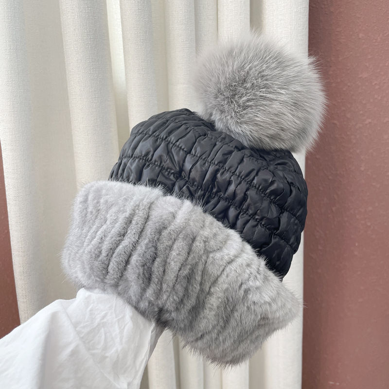 冬の暖かいミンクの毛はミンクの毛皮の帽子の女性のかわいいキツネの毛皮のボールのダウン綿の耳の毛皮の帽子を編みます。