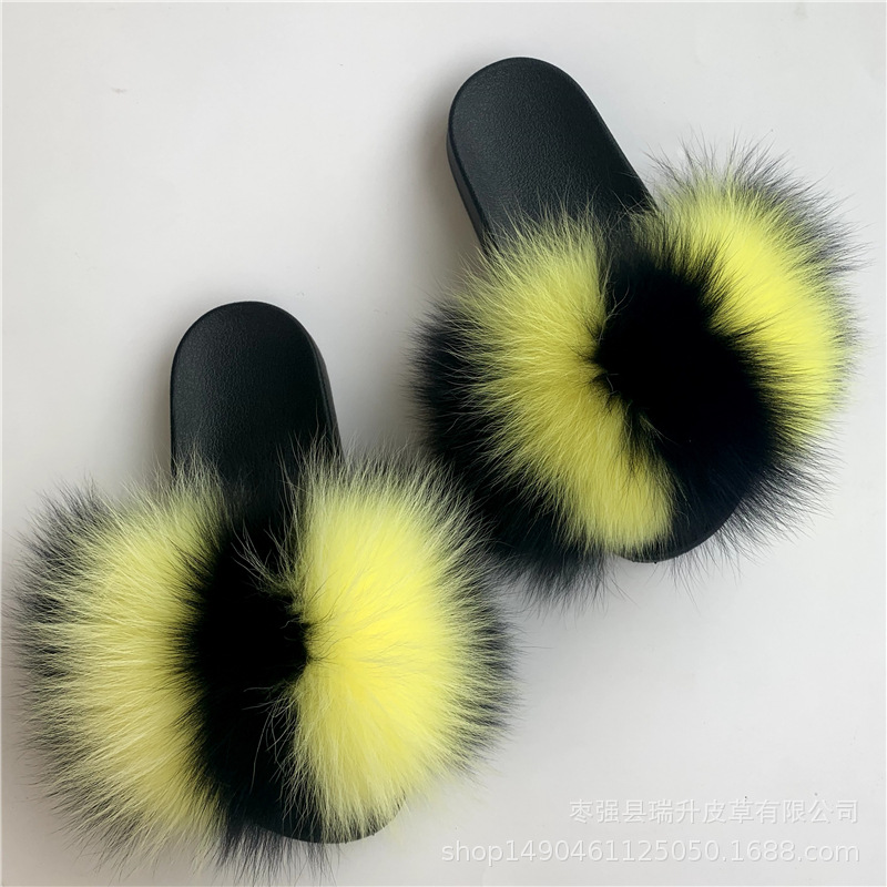 本物のキツネの毛のスリッパの女性evaの毛の毛皮のスリッパの夏の1字のドラッグ