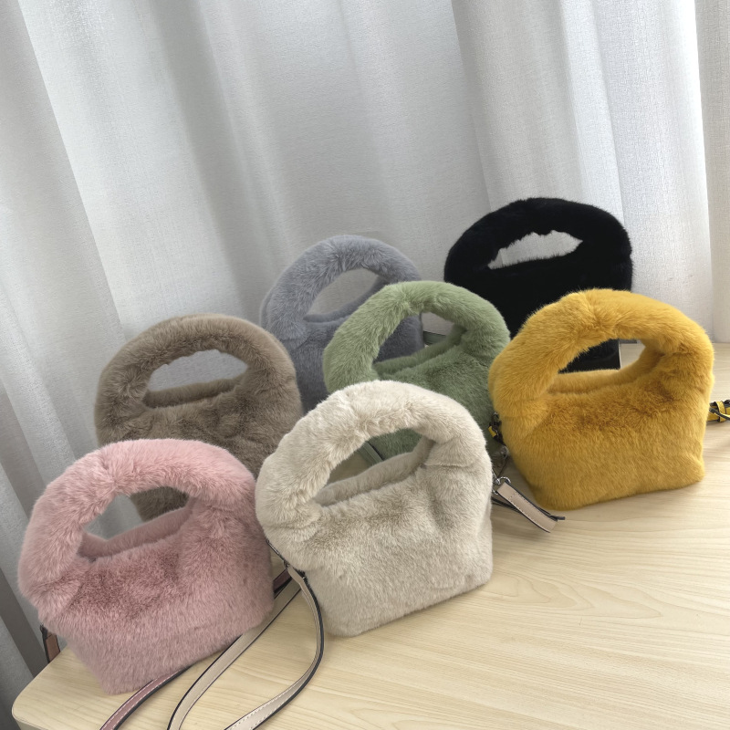 秋冬新作【小きのこ】擬毛女性カバン台形シンプル包み手首カバン肩掛け