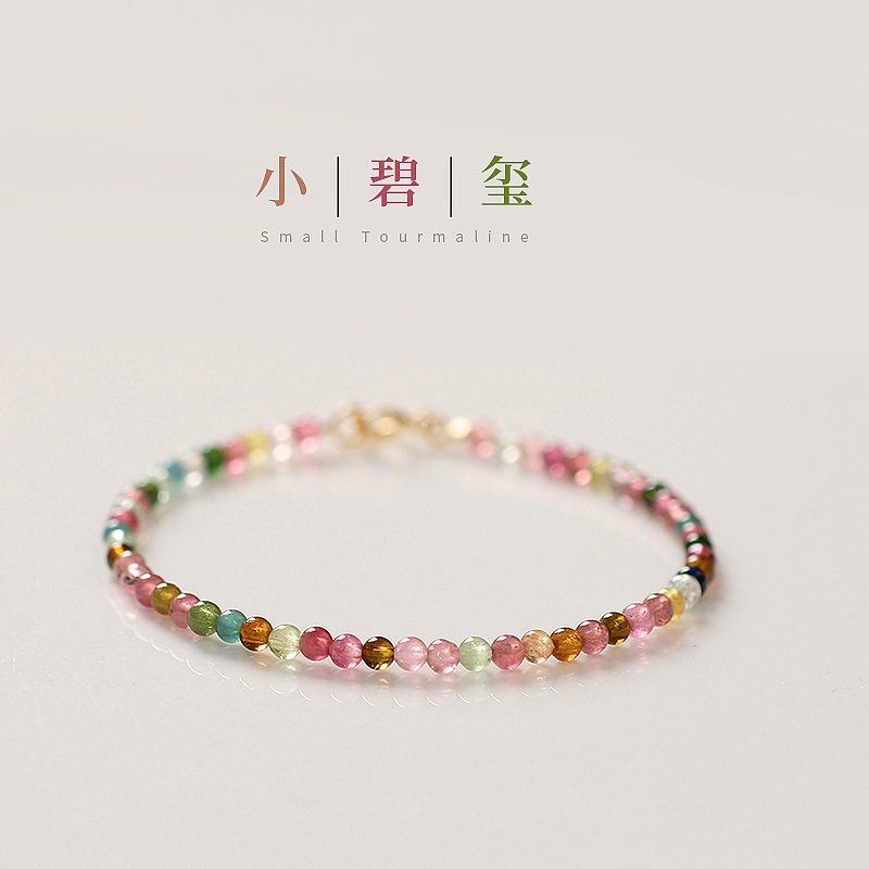 極細天然虹碧璽水晶ブレスレット女ins小衆デザイン感オリジナル高級感14k包金手串