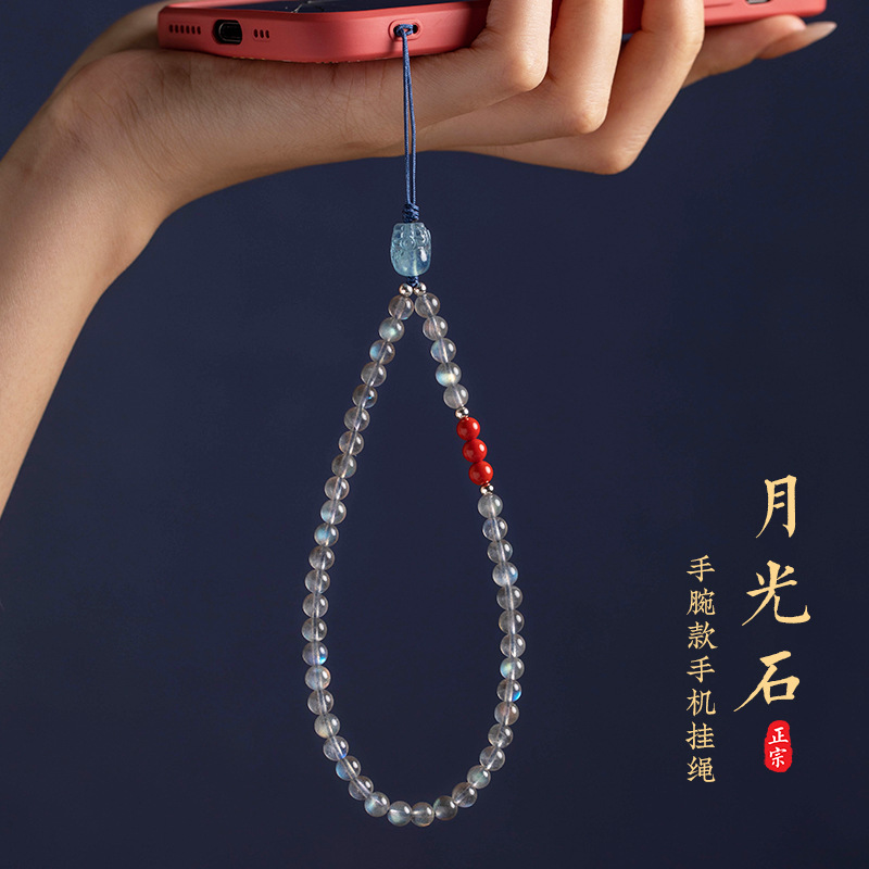 天然の青い月明かりの石の携帯チェーンのペンダントの粉晶の四つ葉のクローバー