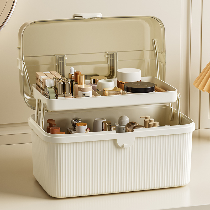 化粧品収納ボックスデスクトップ折り畳み式防塵大容量透明化粧台スキンケア用品棚