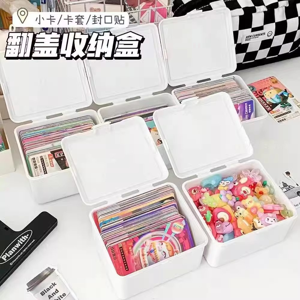 純白フリップ式収納ボックス無印風大容量防塵カードハンド収納デスクトップ文房具整理ボックス