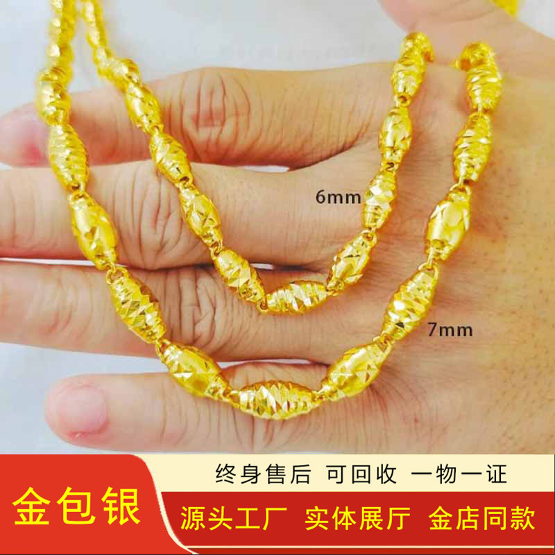 ゴールドシルバーオリーブチェーンメンズクラシックラウンドビーズオリーブビーズネックレスゴールドシルバーネックレストランスファービーズ彼氏へのギフトとして