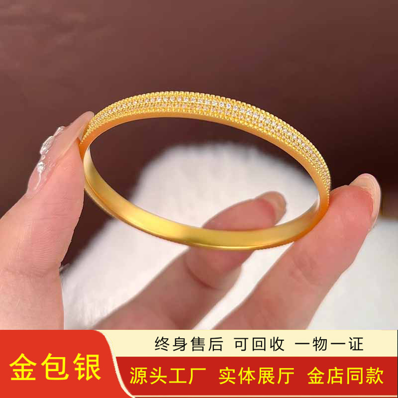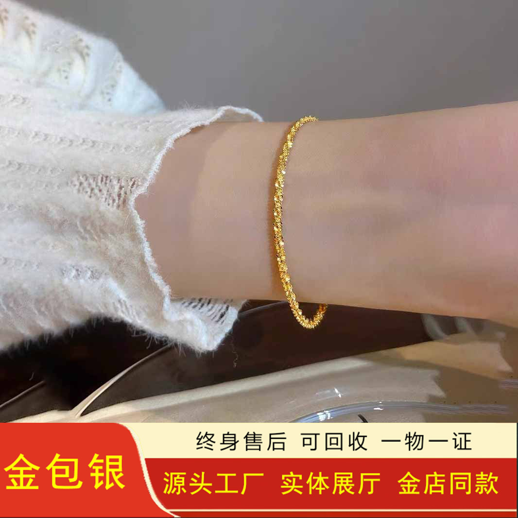 金包銀足銀999双列満ドリル黄金色ブレスレット莫桑ドリルがキラキラ光る彼女にプレゼントする