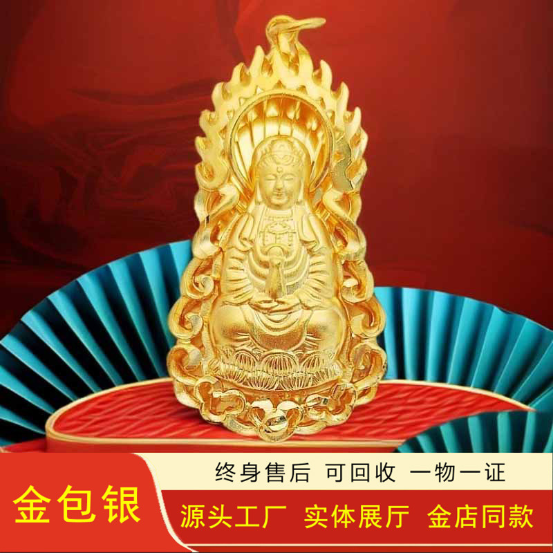 男性用の金で包まれた銀の炎観音菩薩ペンダント、恋人への金で包まれた銀のレトロな中国風のペンダント、520ホリデーギフト