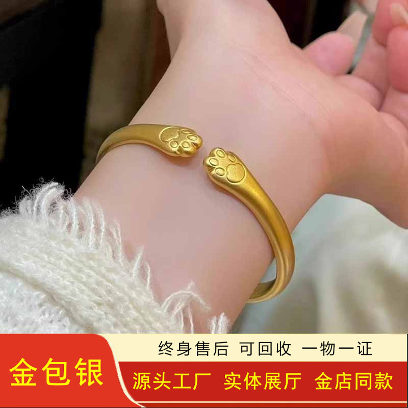 女性用ゴールドシルバーアンティークキャットクロー ブレスレット、プレーンリング、リアルゴールドシルバーブレスレット、オープンクラシックソリッドピースアンドジョイブレスレット