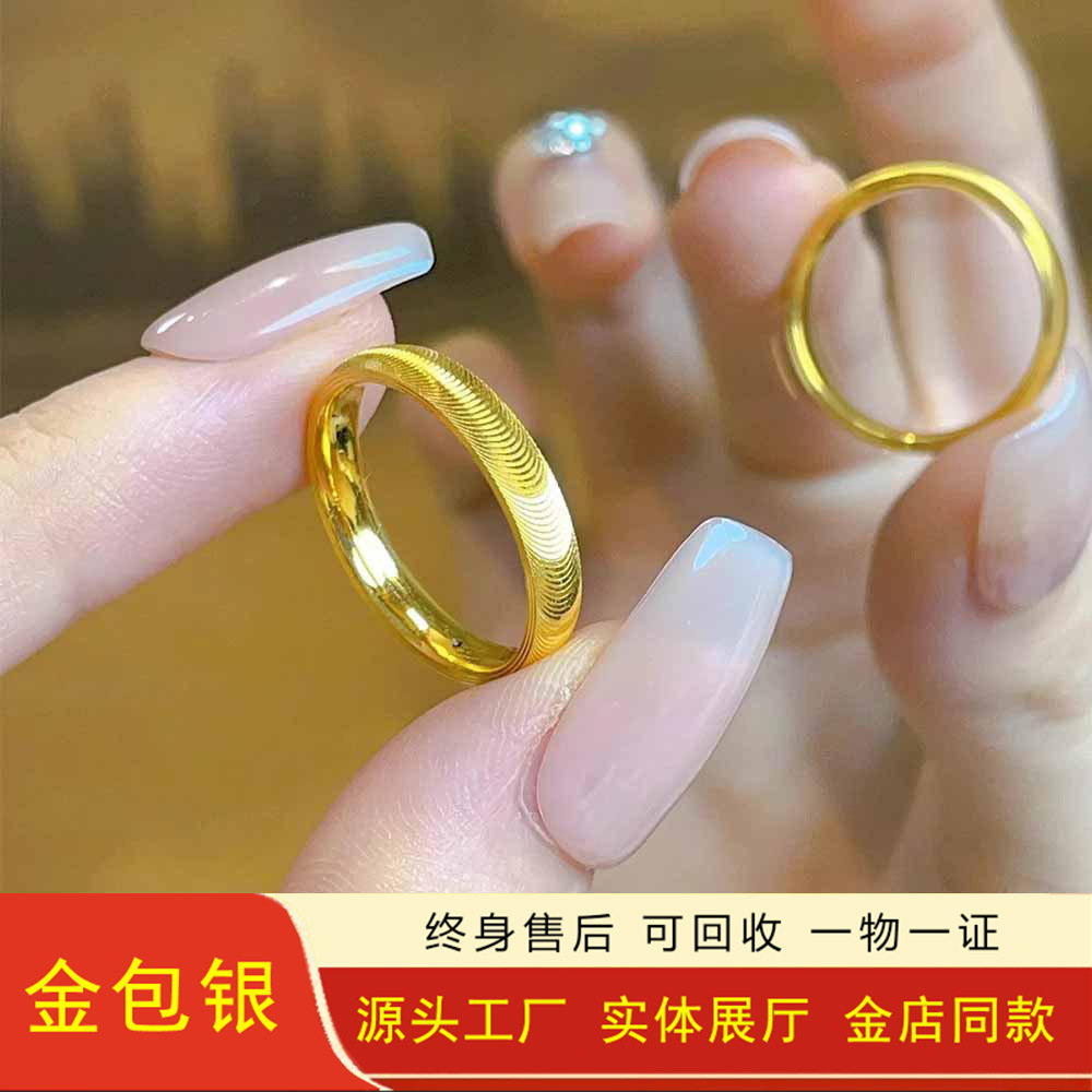 金包銀猫眼指輪女性の素輪男性波紋指輪爆発5Dハード金中実光沢カップルペアリング
