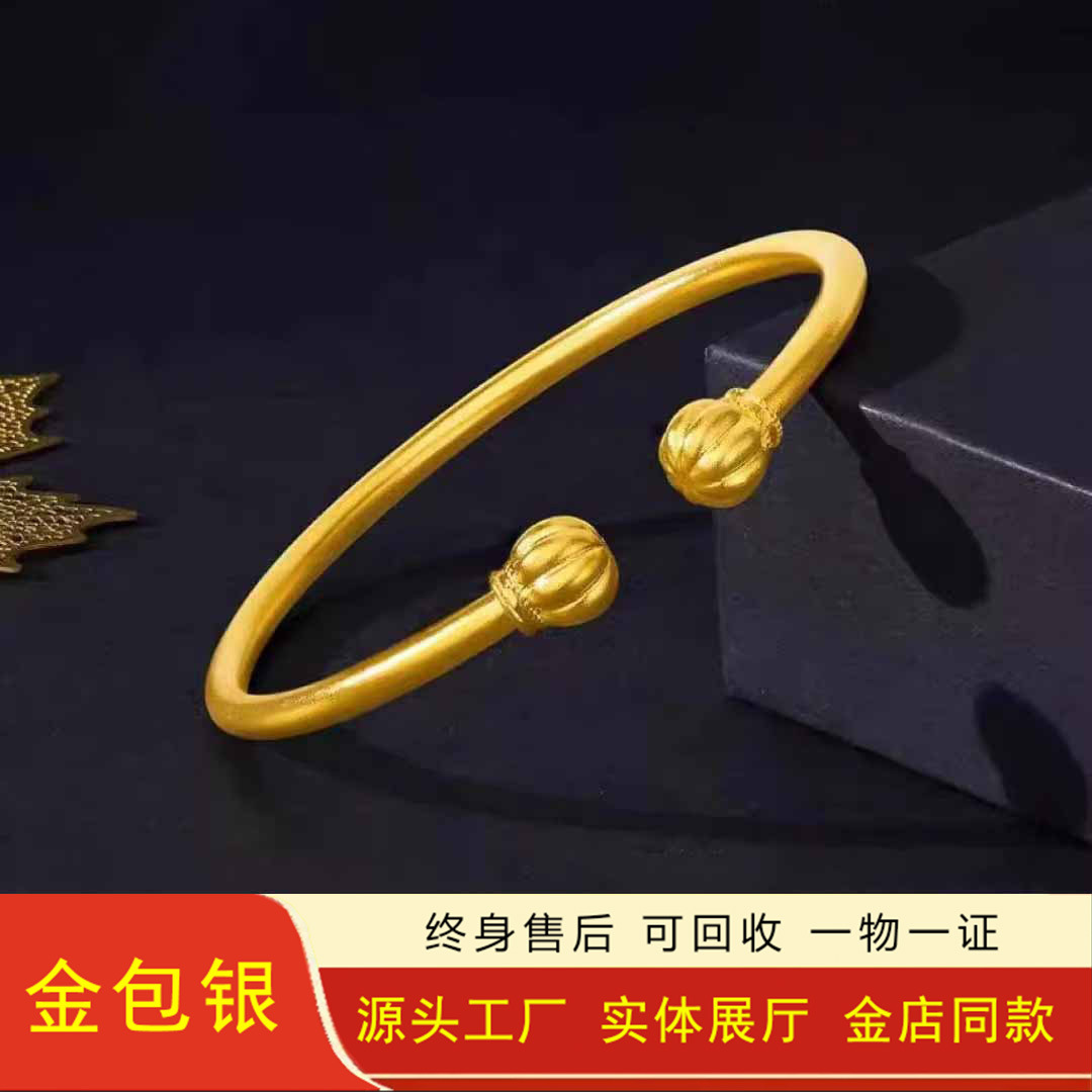 金で包まれた銀のカボチャブレスレット、古代の伝統的なオープンブレスレット、ファッショナブルなブレスレット、シンプルなプレーンリング、女性の誕生日プレゼント