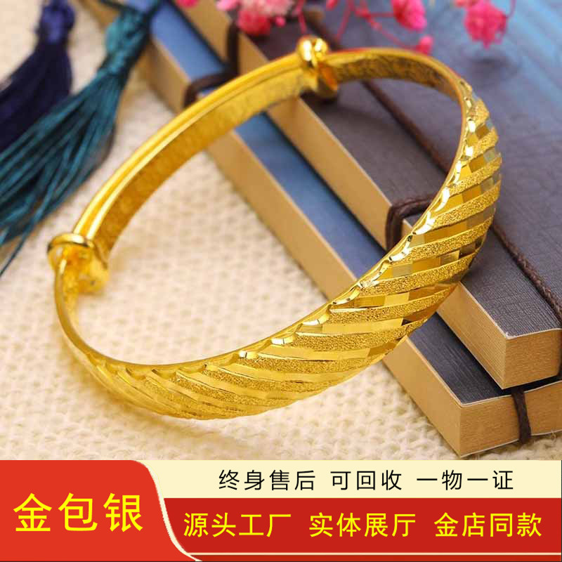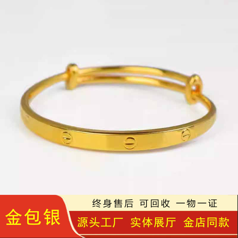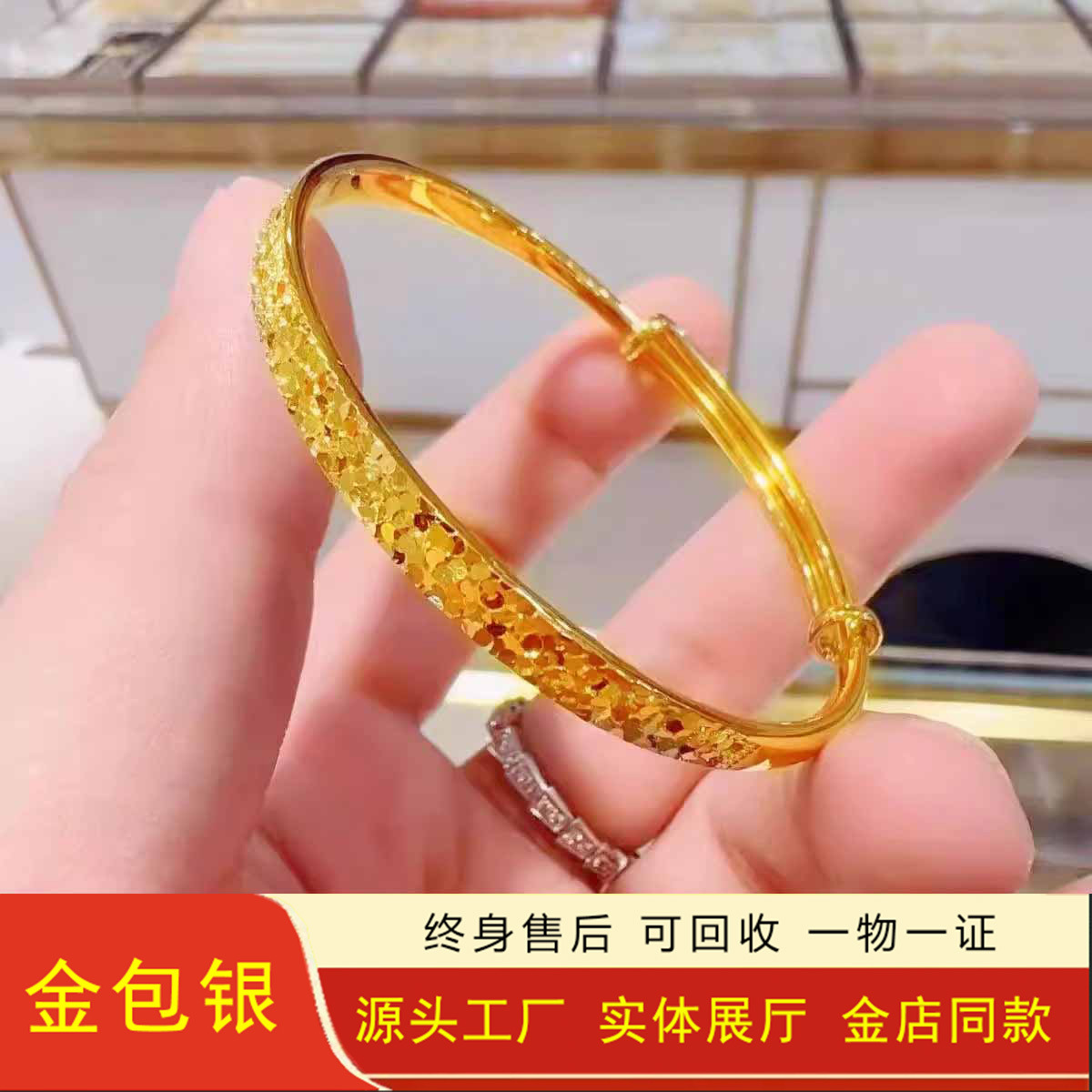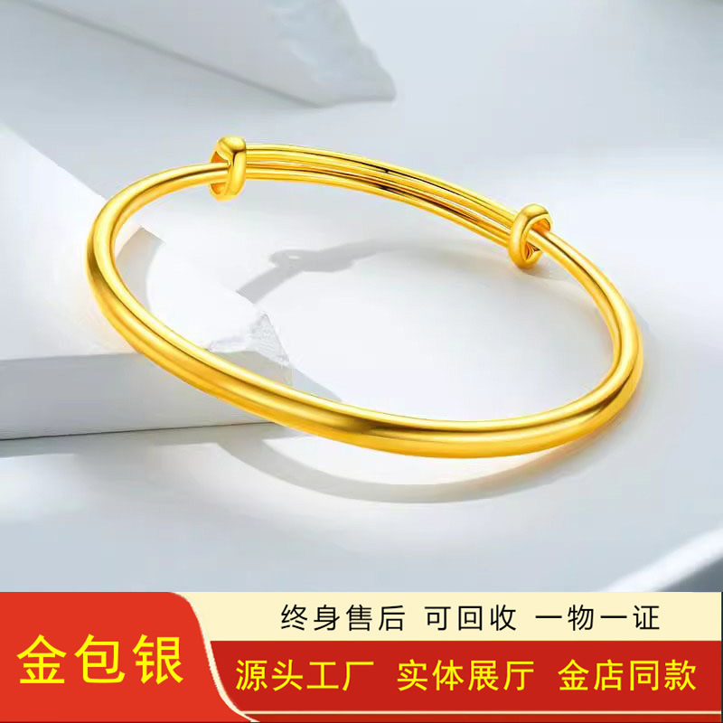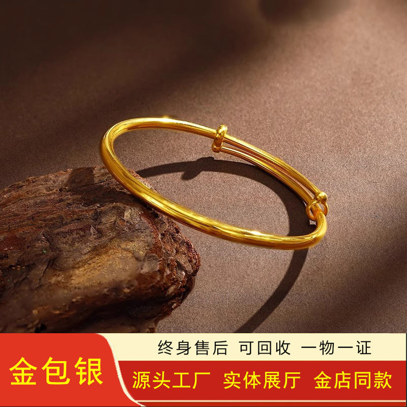 卸売り金包銀ブレスレット女古法中実押し引き調節できない色素輪2025年新型結婚ブレスレット