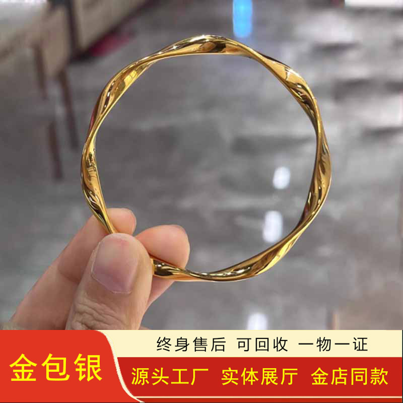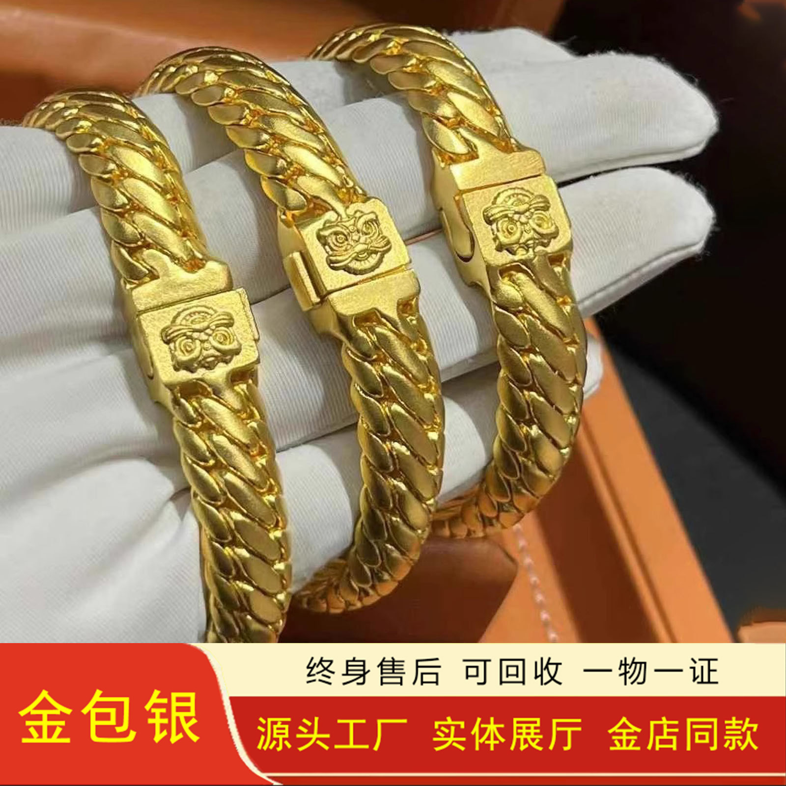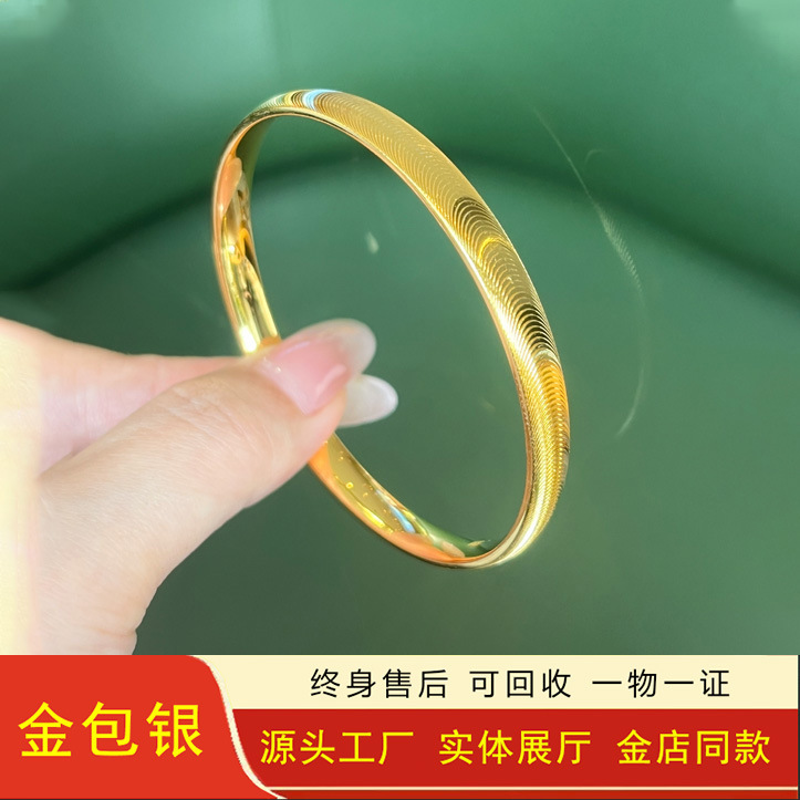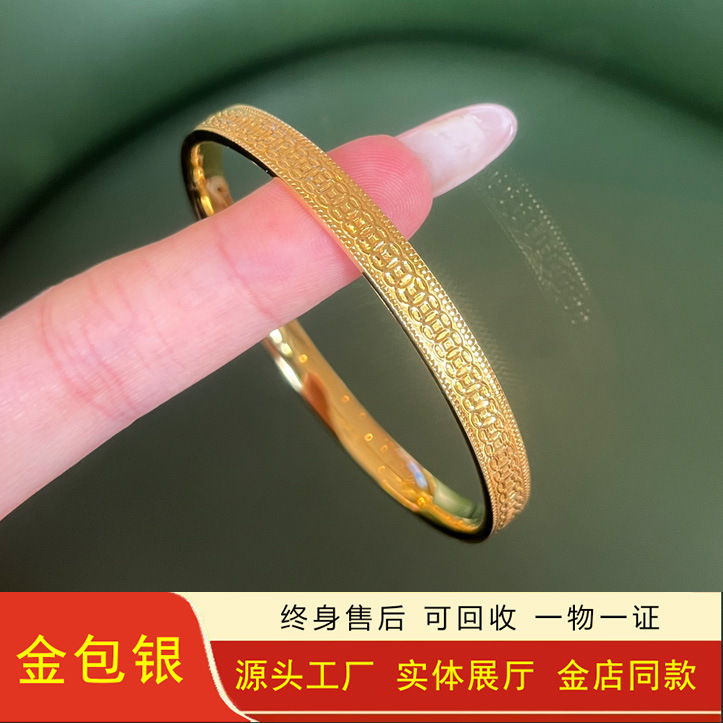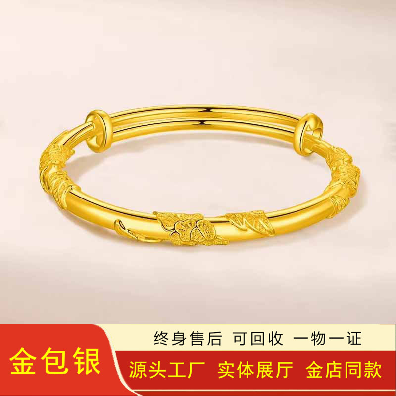卸売り金包銀ブレスレット女古法中実押し引き調節できない色素輪2025年新型結婚ブレスレット