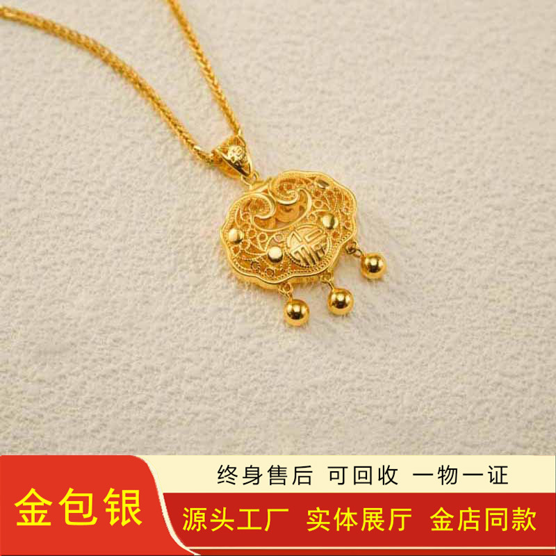 金包銀平安鎖ペンダント足金足銀男女モデル高級百合真黄金色平安鎖赤ちゃんペンダント
