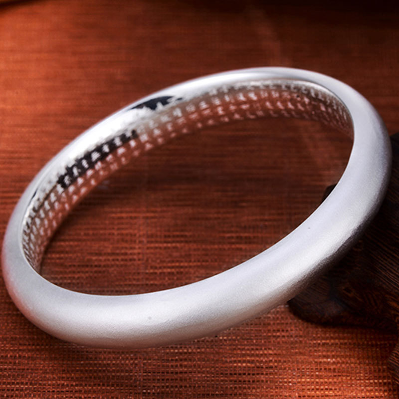 銀薇尼s999足銀心経ブレスレット女性復古して古い光面経文中空純銀ブレスレットを作って母に送ります。