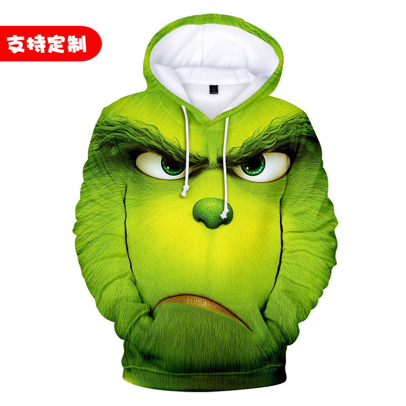 緑の毛の奇妙なグリーンウェアの男女3dデジタルプリントのアマゾンの欧米の外国貿易のクリスマスのパーカーのフード