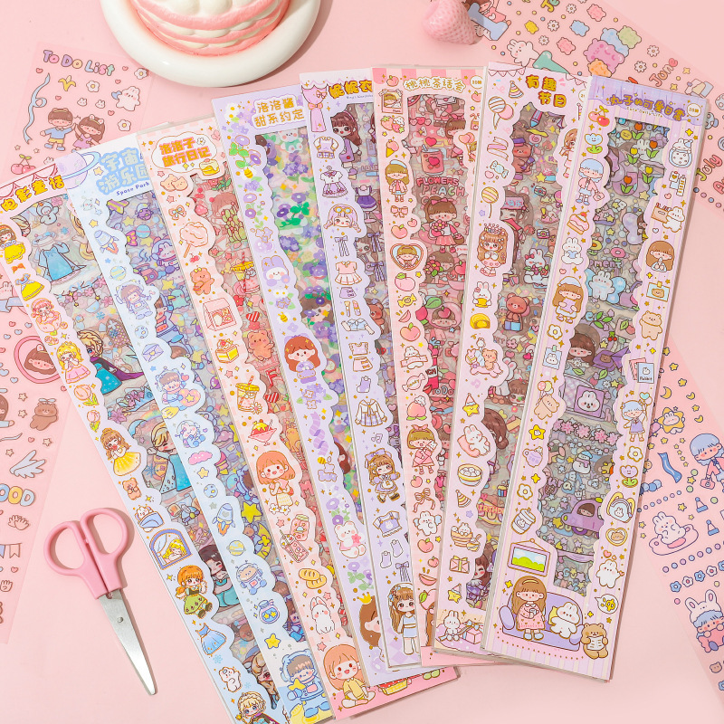 かわいいinsロングシール手帳セット大ギフトボックス防水ネット赤貼り絵子供女の子pet重複しない