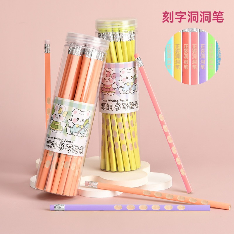 卸売り鉛筆レーザー彫刻ペン小学生文房具賞品ゴム付きHB穴ペン子供マカロン鉛筆