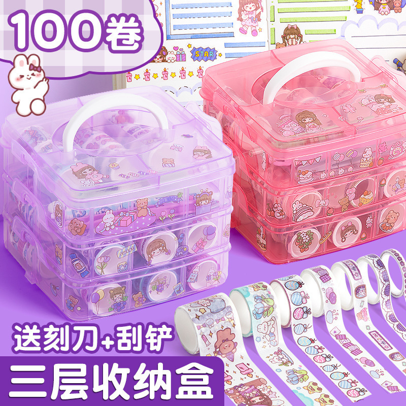 豪华100巻手帐テープステッカーセットカラーフィルムと纸テープ漫画かわいい女の子ギフトボックス