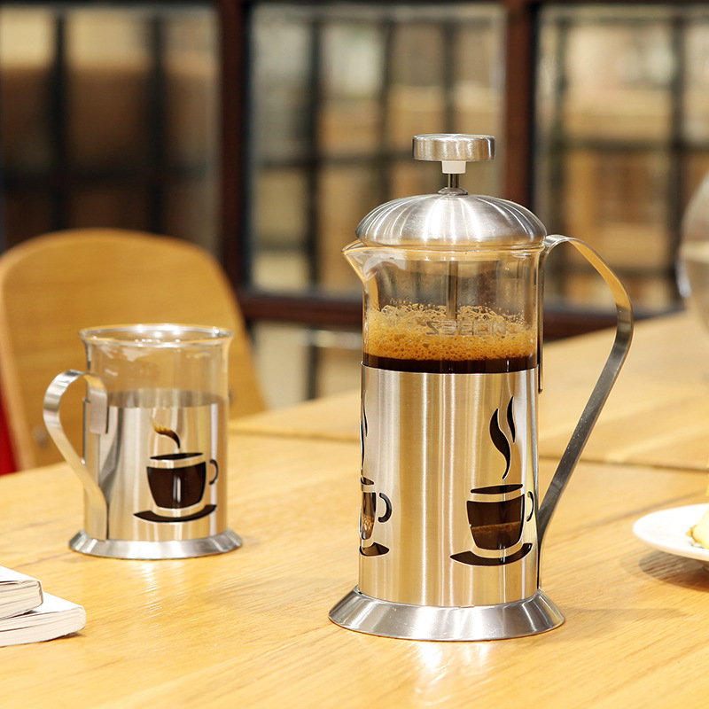 Seecinコーヒーポットフランスコーヒー圧搾ポットティーポットコーヒーカップ法圧杯ステンレスガラス法圧壷