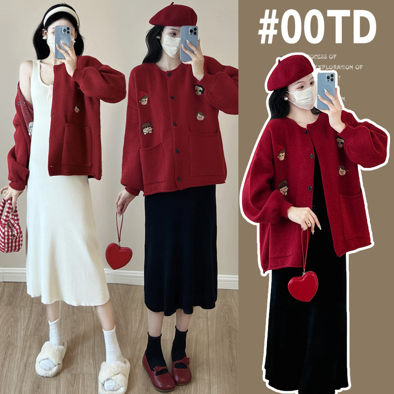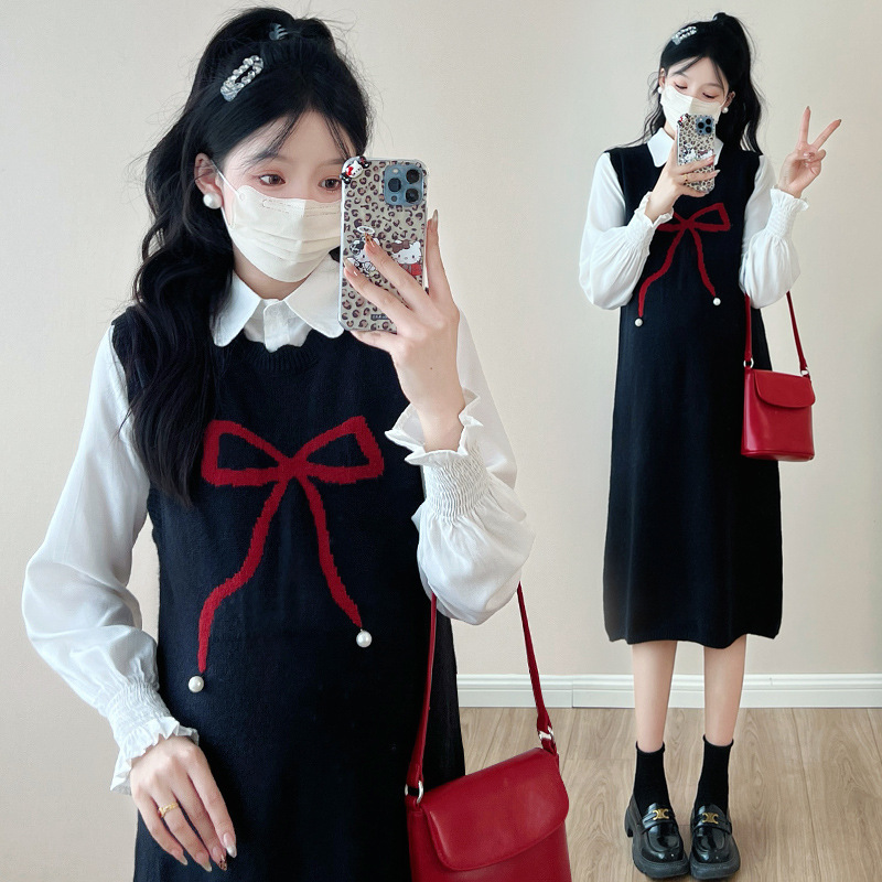 妊婦服潮母新商品冬服セット洋気減齢セーターカーディガン2点セット流行ベストスカート秋冬