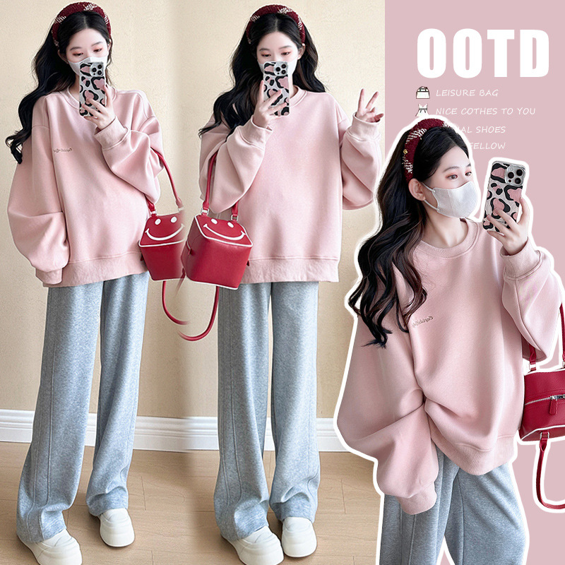 妊婦服秋セットファッションファッションママ新型韓国版カジュアル長袖衛衣ゆったり広脚長ズボン2点セット