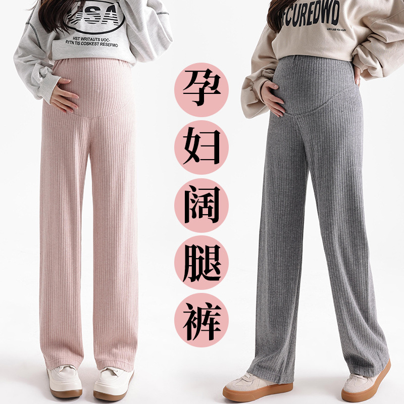 妊婦のズボンの春秋のタイプの外は秋のまっすぐな筒の広い足のズボンの潮のお母さんの新型の大きいサイズを着て腹の底のズボンの秋の服を支えません。