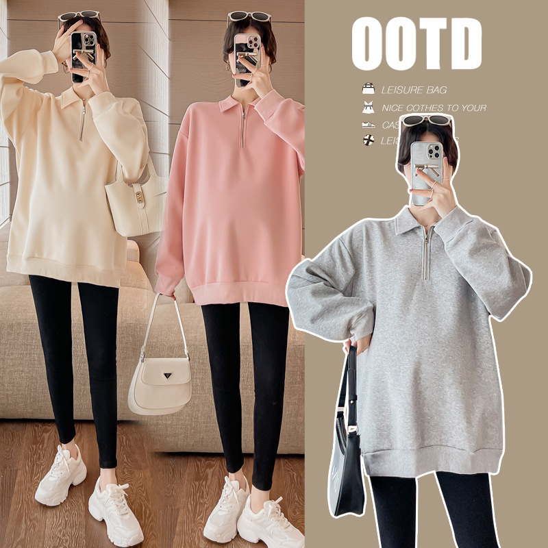 妊婦服春秋潮母の新型ゆるいファッションが痩せているカジュアルなパーカーの高級感POIO襟の上着