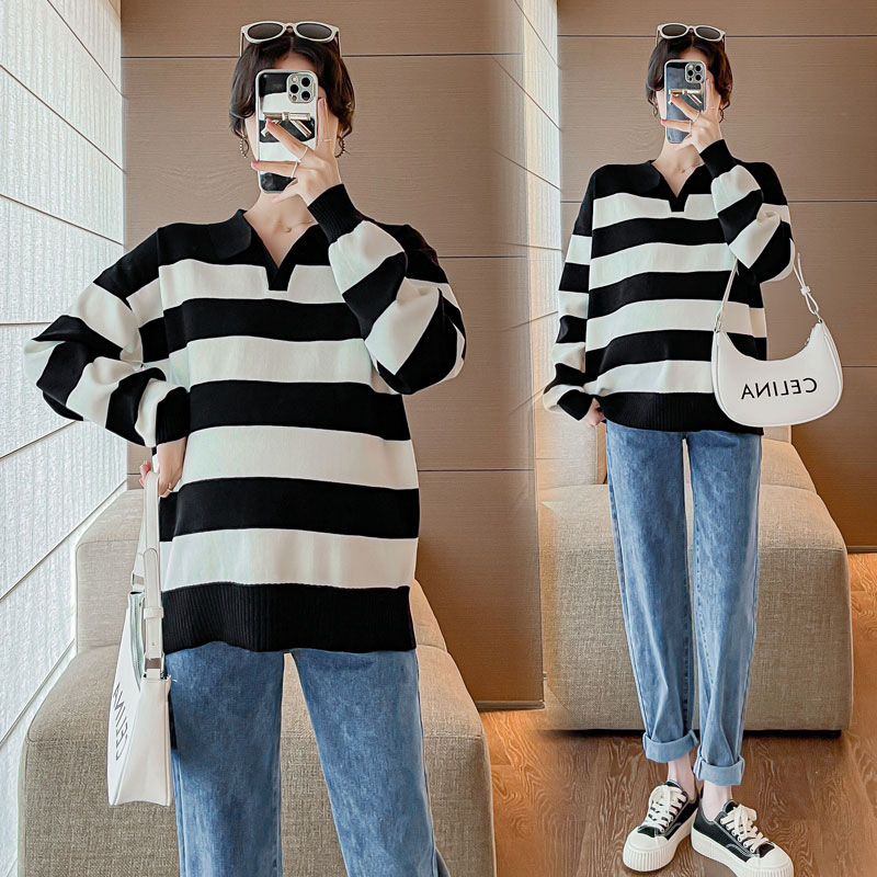 妊婦服秋のファッションママの新しいスーツファッションカジュアルなストライプのワンピース春秋のセーターのスカートの2つのセット