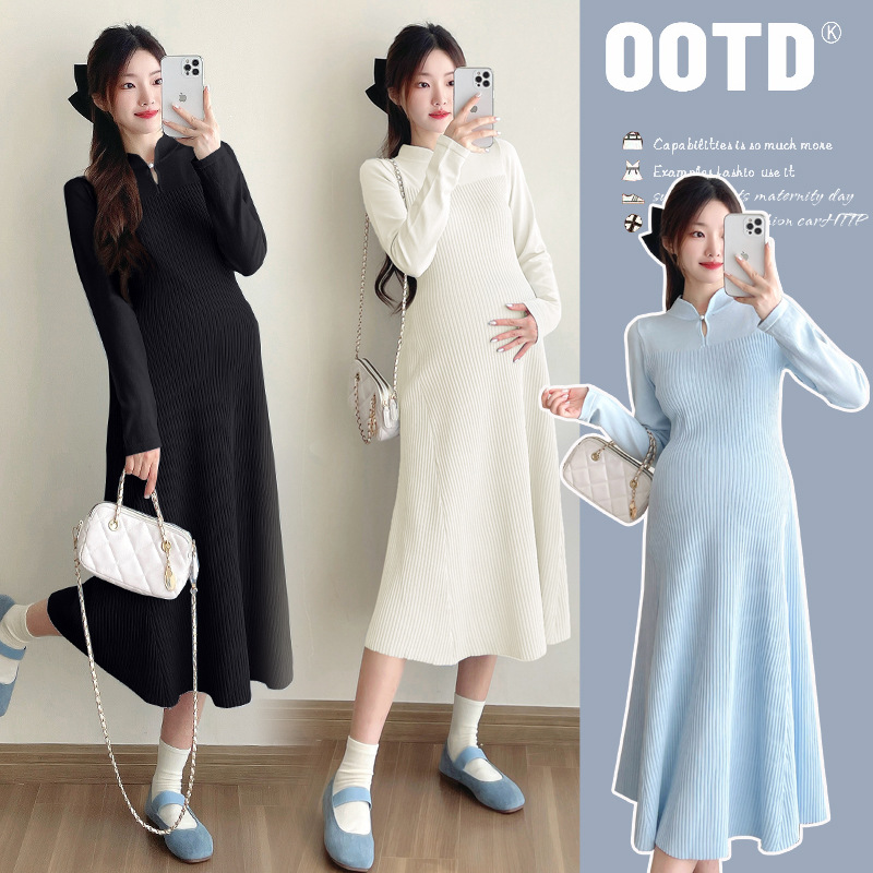 妊婦のワンピース春秋潮のお母さんの新型の気質はやせている新中国式の長袖のニットのスカートのファッションの垂れ下がっている感じの中で長いです。
