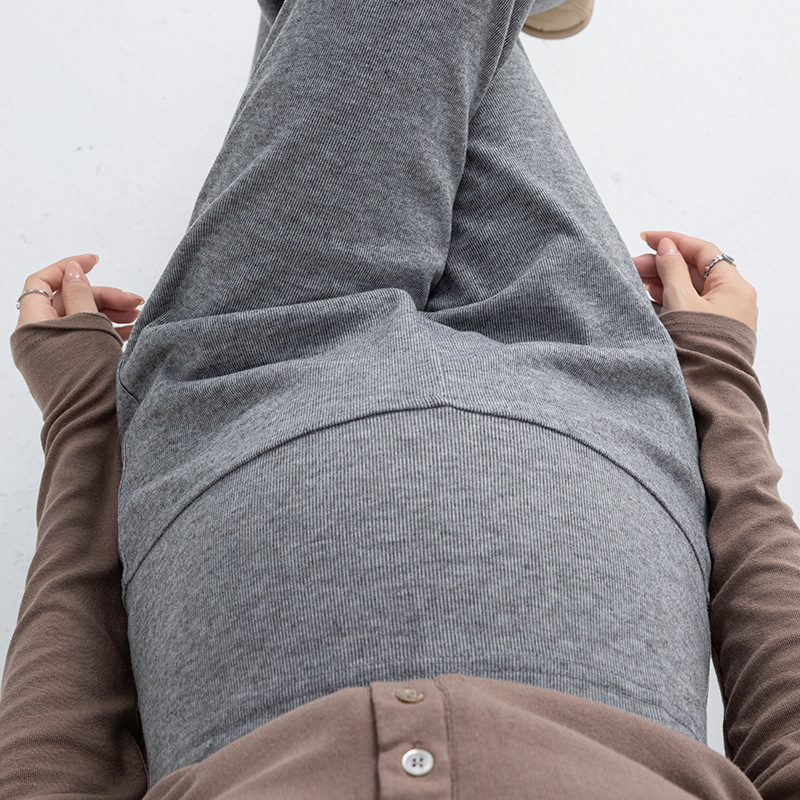 妊婦のズボンの秋の冬の高腰は腹を支えていません。