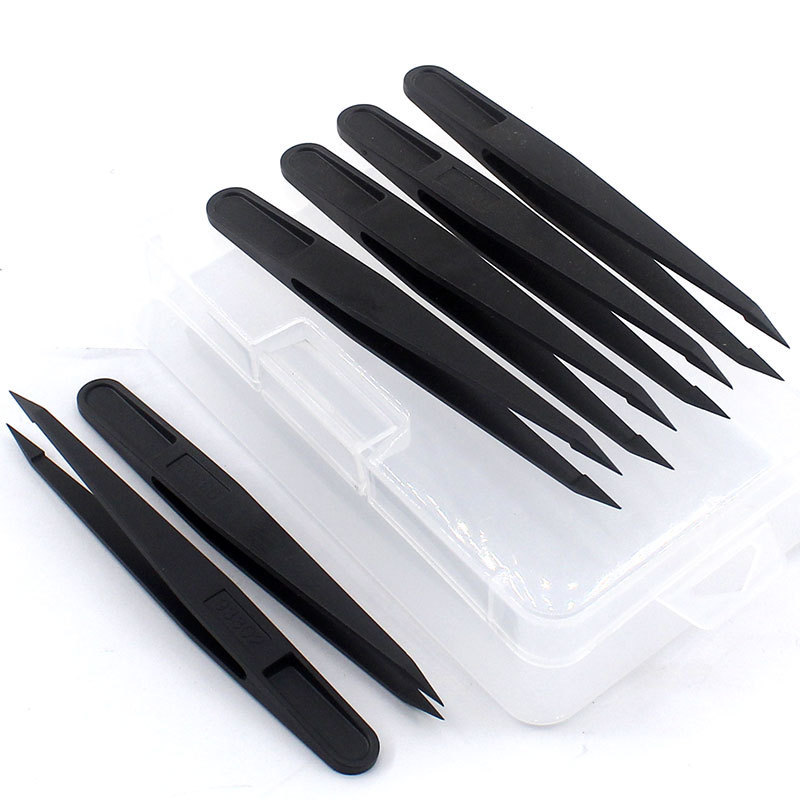メーカー直販ピンセット携帯電話修理ストレートツール黒色帯電防止プラスチックピンセット先端クリップ卸売り