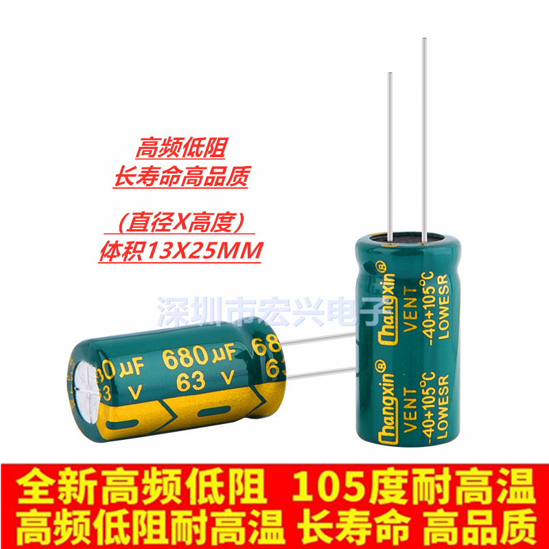 63V680UF高周波低抵抗長寿命インライン電解コンデンサ680UF 63V体積13x25mm