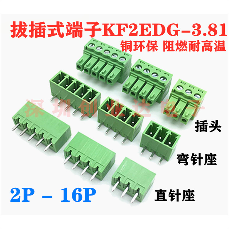 KF2EDG 3.81mmプラグ式pcb端子曲げストレートソケット2/3/4/5/6/7/8/9/16p