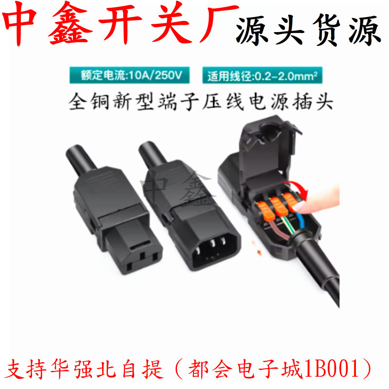 新型端子圧線AC電源プラグ10A/250V三穴三針品字プラグオス母ドッキング充電ヘッド