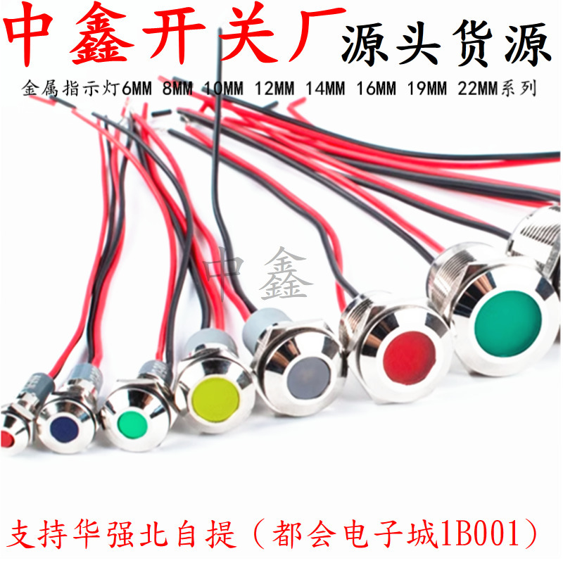 LED金属表示灯6mm 8/10/12/16/22電源防雨信号灯6v 12v 24v 220v