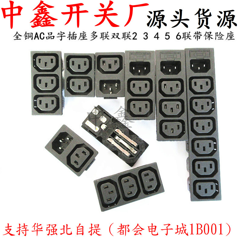 AC品字ソケット多連2連2 3 4 5 6連保険電源付き複数のケースキャビネットソケット