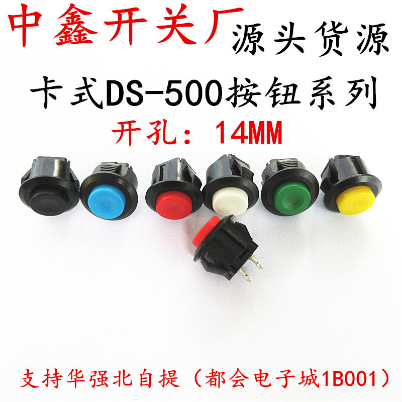 DS-500スナップ式押しボタンスイッチ14mm丸頭自己リセット常開2脚電気自動車ホーンスイッチ