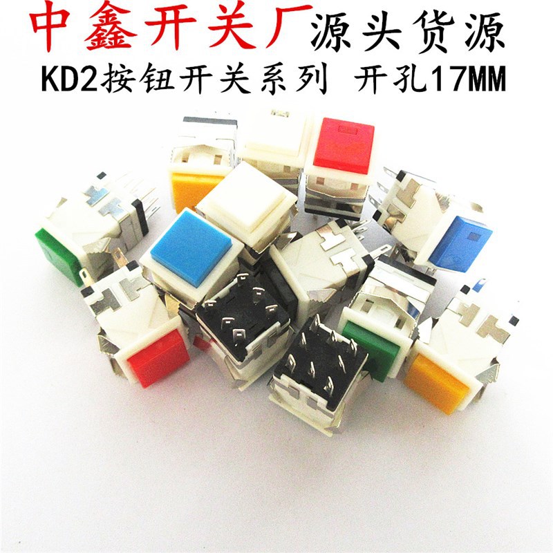 穴あけ17MM角型押しボタンスイッチKD2-24ライト無しKD2-23セルフロックKD2-22リセットKD2-21ライト付き