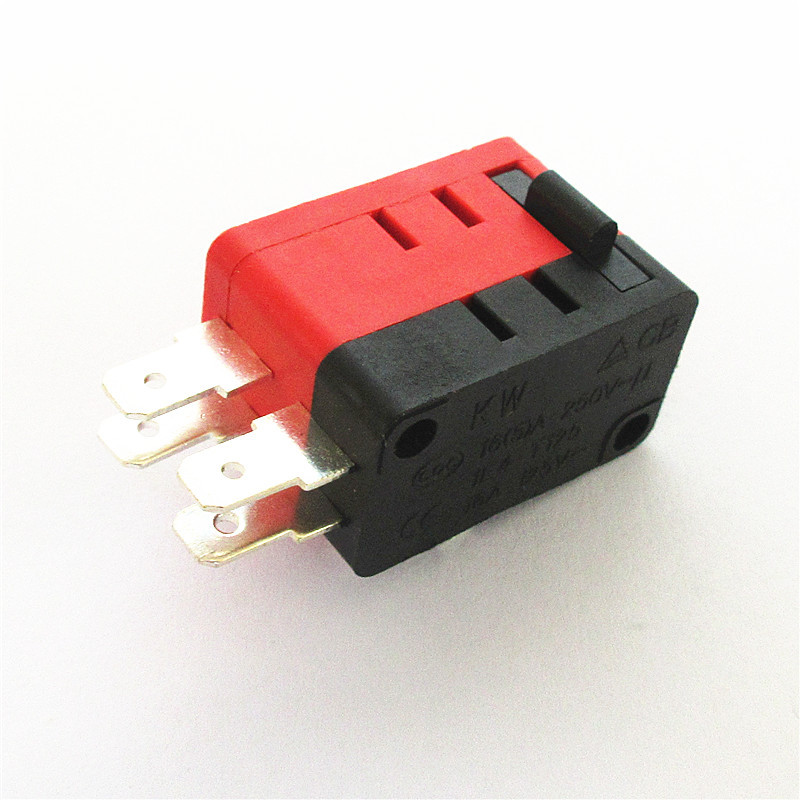 二連マイクロスイッチV-15-2C25銀接点16A250V脚4.8MM黒地赤カバー