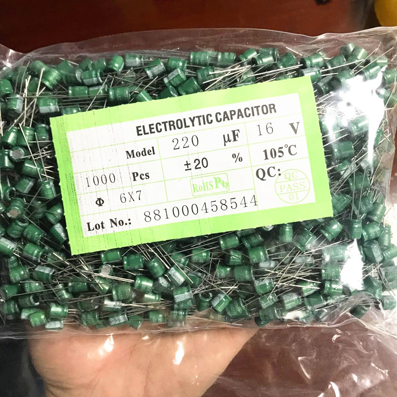台湾産16v 220uf高周波低抵抗グリーン長寿命電解コンデンサ体積6x7 1000匹 = 48元