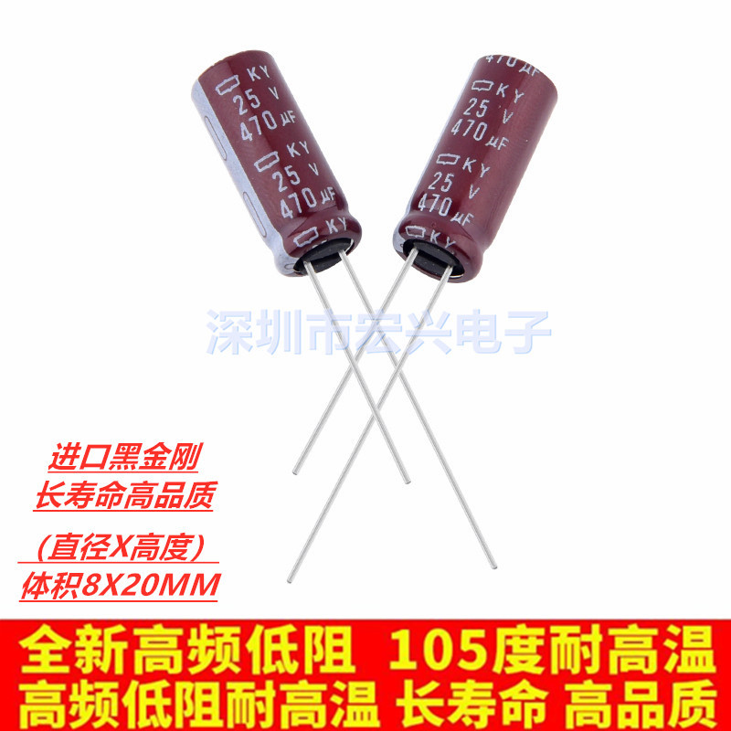 日本ブラックコング電解コンデンサ25V470UF 470UF25V 8x20高周波低抵抗105度