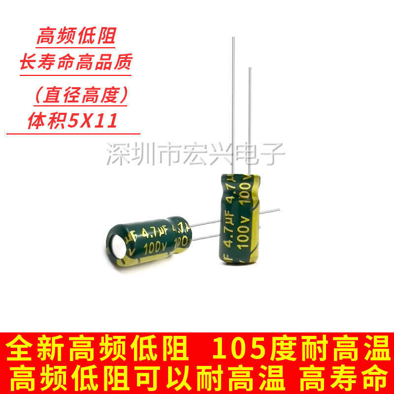 100V4.7UF高周波低抵抗長寿命緑金色電解コンデンサ体積5x11 1000個 = 45元