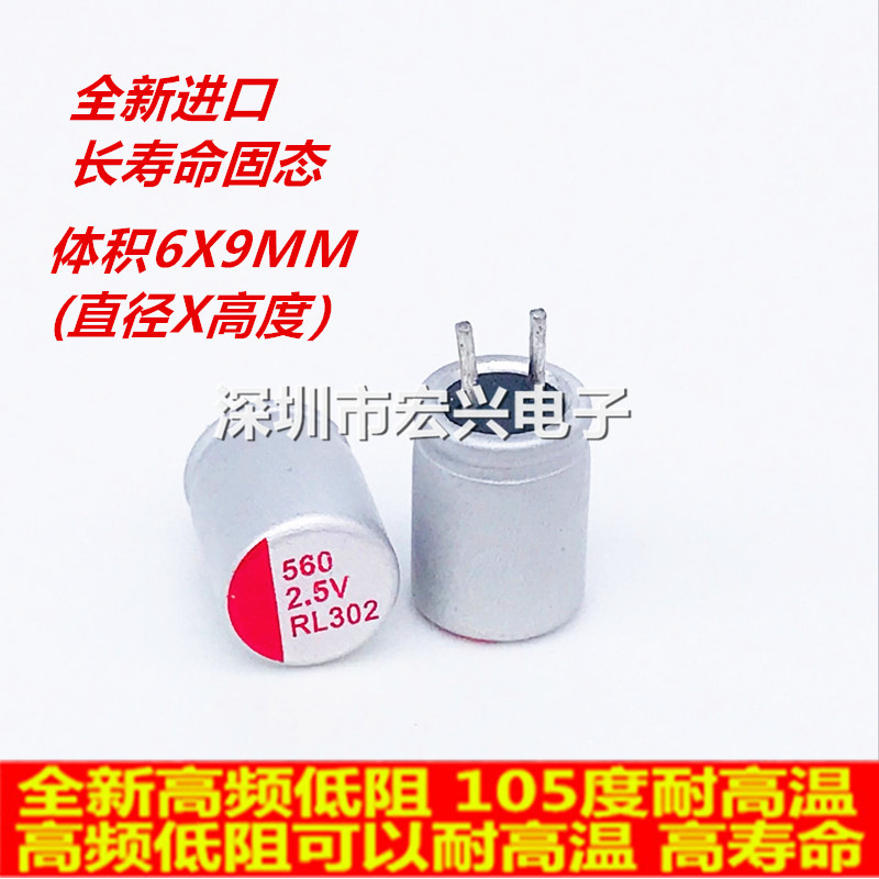 2.5V560UF輸入長寿命マザーボード常用耐久性固体電解コンデンサー560UF 2.5V 6x9mm