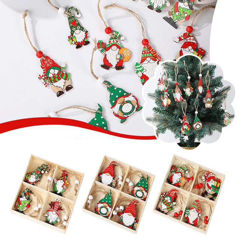 新しいクリスマスの装飾品の木製の顔のない老人の小さいペンダントのクリスマスツリーは12個の木の箱の包装のつりを飾ります。