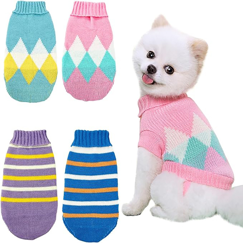 越境猫服多色折り襟カジュアルペットセーターニット犬セーター保温中小型犬服