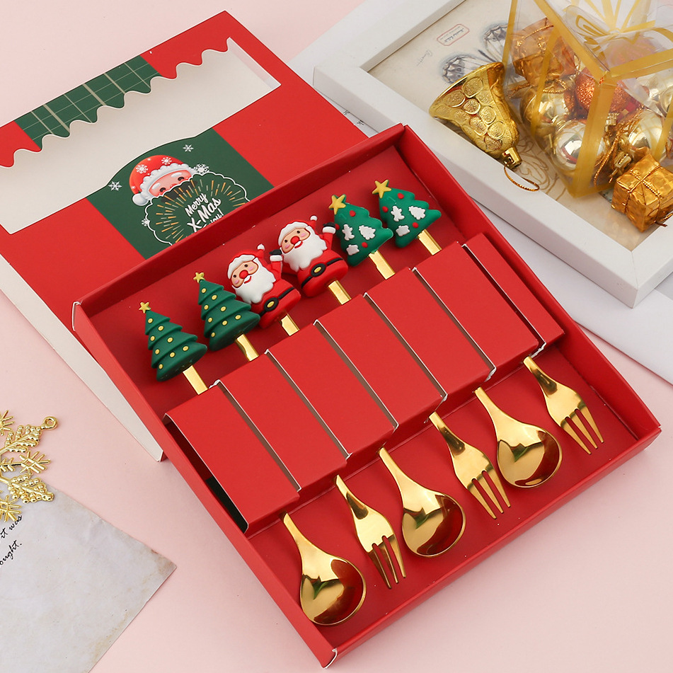 国境を越えた新しいクリスマススプーン食器セットデザートコーヒー果物フォーククリスマスツリープレゼント