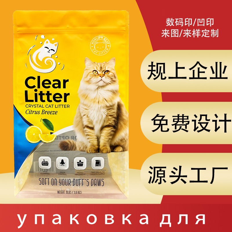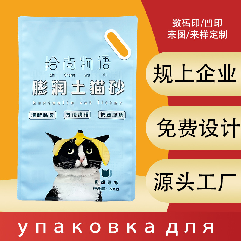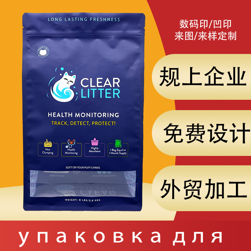 八边封猫砂包装袋开窗透明宠物食品密封袋塑料复合膜水晶猫砂袋子