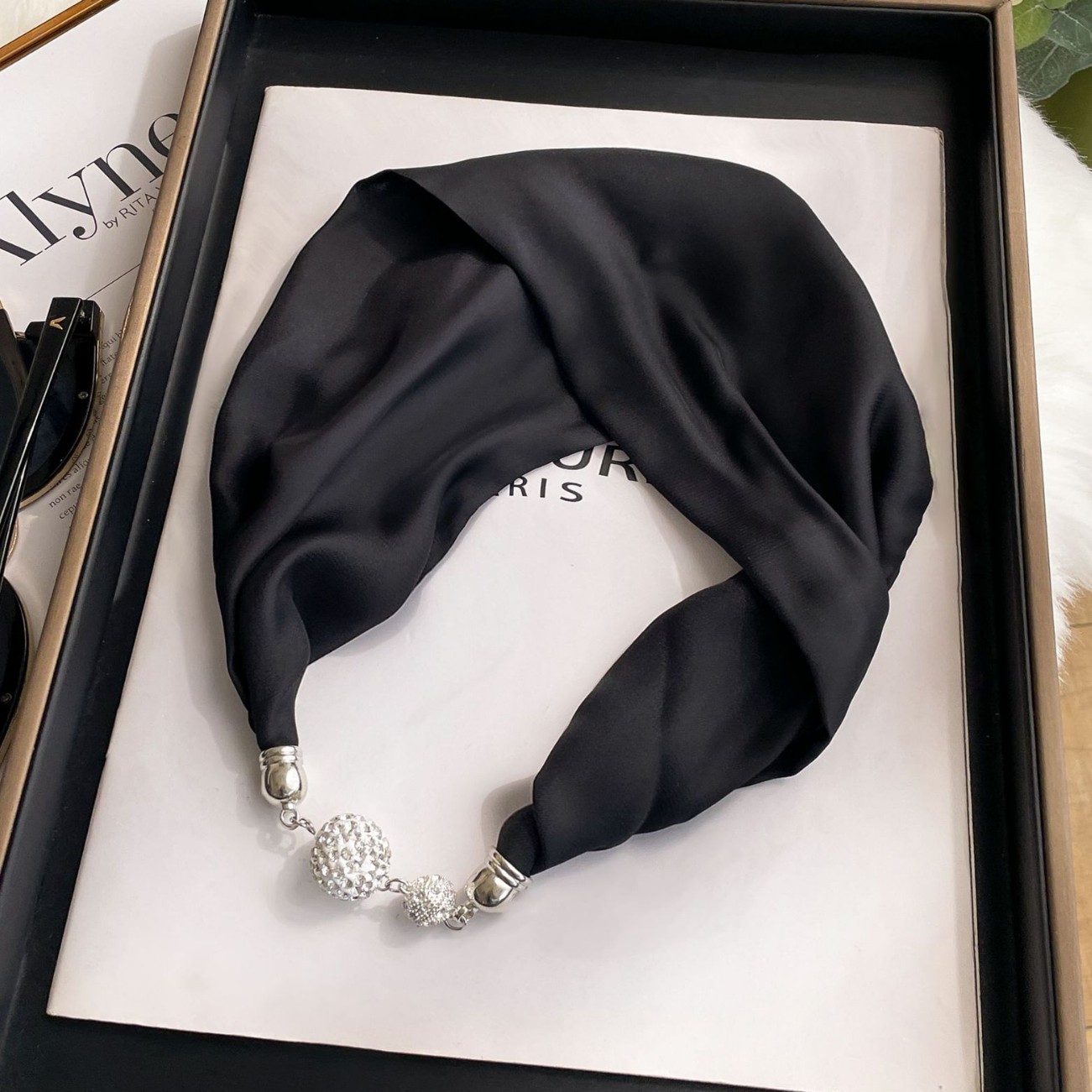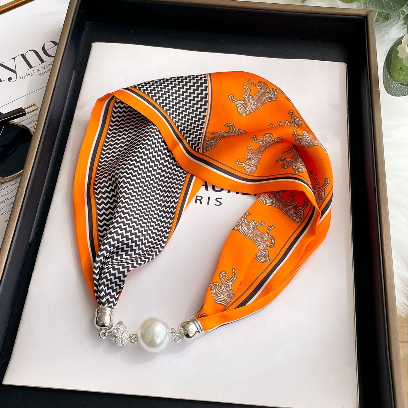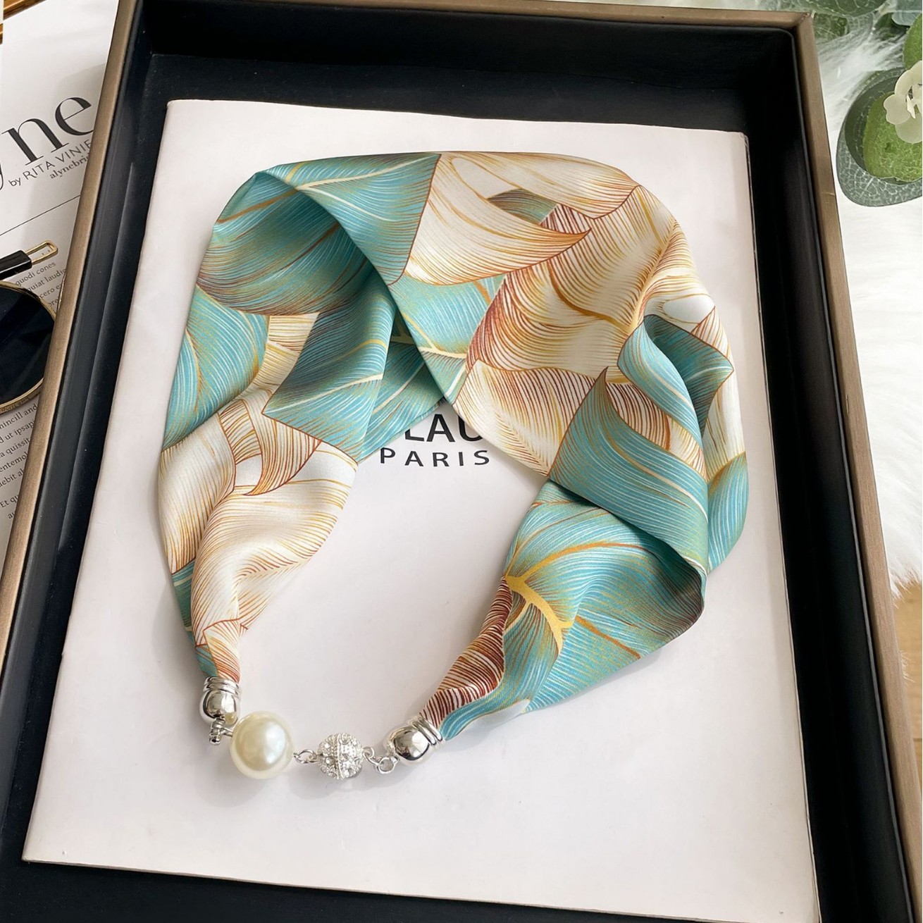 マグネット式シルクスカーフ レディース パールネックレス 簡単装飾 夏 2024年新作 ネックウォーマー シルクスカーフ 卸売
